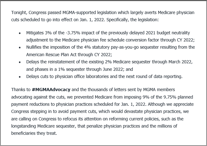 MGMA will continue to monitor this evolving situation and provide updates.”