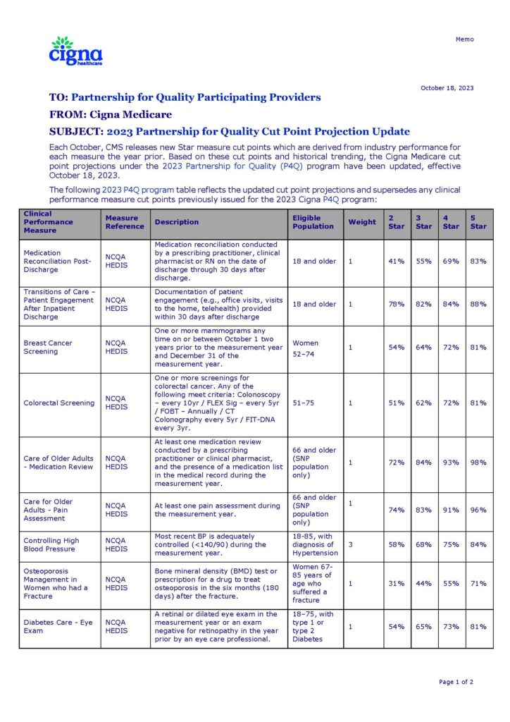 2023 P4Q Cut Point Projection Update