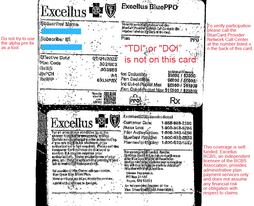 Look at the front of the card. Blue Cross is written all over it. BCBS must be the insurer? STOP!